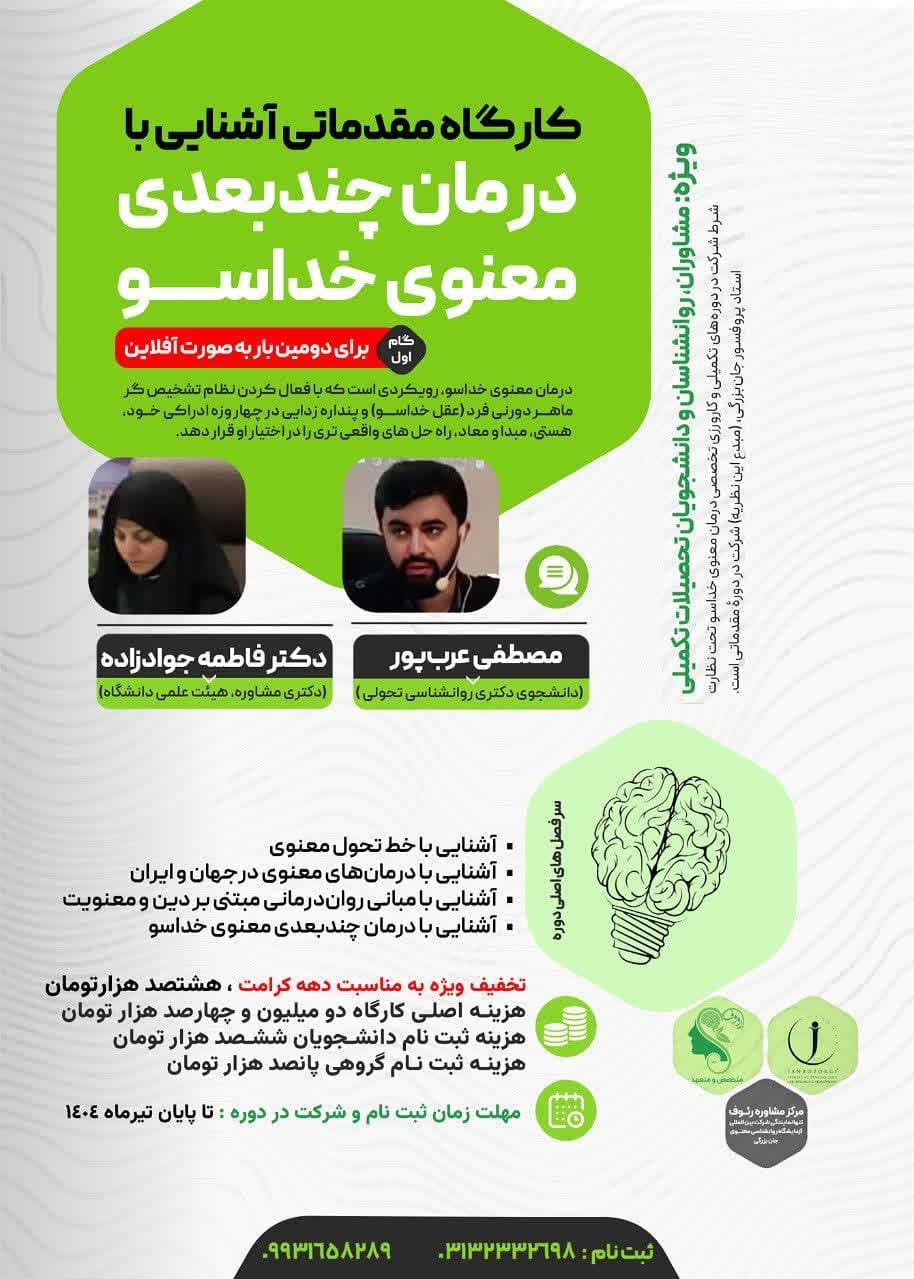 💥 شرط شرکت در دوره های تکمیلی و کارورزی تخصصی درمان معنوی خداسو تحت نظارت دکتر مسعود جان بزرگی(مبدع این نظریه)، شرکت در دورۀ مقدماتی است.